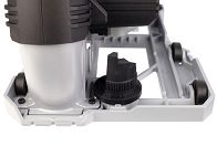 6 rolek w podstawie i oznaczenia wskazujące pozycję wykonywanych cięć zapewniają wygodne i dokładne prowadzenie elektronarzędzia po obrabianym elemencie.