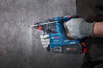 Profesjonalna młotowiertarka model GBH 18V-22 X firmy BOSCH to specjalistyczne urządzenia z dużą skutecznością i wydajnością pracy. Posiada porównywalne parametry techniczne co młotowiertarka z zasilaniem elektrycznym. Zoptymalizowany mechanizm udarowy z funkcją kucia pozwala na wiercenie w betonie otworów o maksymalnej średnicy 22mm (optymalny zakres od 6 do 12mm), a dzięki energii udaru wynoszącej - 2,0J, jest równie szybka jak młotowiertarka z zasilaniem elektrycznym klasy 2kg (np. GBH 240 firmy BOSCH).