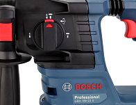 Specjalne złącze do podłączenia systemu odsysania pyłów GDE 18V-12 BOSCH pozwala na szybkie przezbrojenie urządzenia w młotowiertarkę ze zintegrowanym systemem odsysania pyłów, montaż i demontaż systemu odbywa się bez użycia dodatkowych narzedzi. Wentylator systemu zasilany jest akumulatorem zamontowanym w młotowiertarce, a wbudowany filtr HEPA sprawia, że podczas wiercenia aż 99,97% cząsteczek o średnicy powyżej 0,3 mikrometra jest pochłaniane i magazynowane w pojemniku.