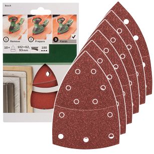 Zestaw 6 papierów ściernych do szlifierki EASYCUT&GRIND Firma BOSCH jest jednym z największych na świecie producentem materiałów ściernych przeznaczonych do zastosowań z użyciem elektronarzędzi. W swojej ofercie posiada bardzo szeroką gamę papierów ściernych i taśm szlifierskich do obróbki takich materiałów jak: drewno różnej twardości, płyty wiórowe, stal szlachetna (np. stal nierdzewna, chromowa, czy wanadowa), metale kolorowe (aluminium, miedź, mosiądz, brąz), kamień sztuczny i naturalny, szkło, powłoki malarskie (farba, lakier, masa szpachlowa, wypełniacze), czy pleksiglas. Papiery ścierne przeznaczone są do: twarde drewno miękkie drewno płyty wiórowe materiały drewnopochodne drewno budowlane metale kolorowe masy szpachlowe powierzchnie pokryte farbami - usuwanie powłok malarskich powierzchnie pokryte lakierami - usuwanie powłok lakierniczych ...
