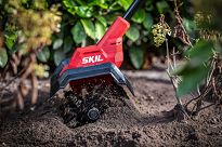 Kultywator akumulatorowy model 0690 firmy SKIL z linii RED Line o szerokości spulchniania 23 cm przeznaczony jest do łatwego usuwania chwastów oraz spulchniania gleby przed wysiewem nasion.