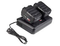 Ładowarka umożliwia ładowanie jednego akumulatora lub dwóch akumulatorów jednocześnie. Dzięki takiemu rozwiązaniu oszczędzamy czas potrzebny na ładowanie akumulatorów aby móc dalej kontynuować pracę.