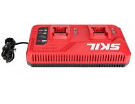 Cyfrowa ładowarka sieciowa model 3132 CHARGER firmy SKIL przeznaczona jest do jednoczesnego ładowania dwóch akumulatorów litowo-jonowych o napięciu 20V Max (18V) z linii RED Line firmy SKIL.