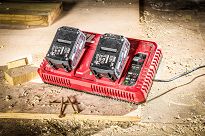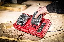Ładowarka umożliwia ładowanie jednego akumulatora lub dwóch akumulatorów jednocześnie. Dzięki takiemu rozwiązaniu oszczędzamy czas potrzebny na ładowanie akumulatorów aby móc dalej kontynuować pracę.