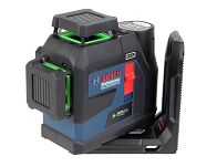 Duży kąt wyświetlania 3 wiązek laserowych = 360° - laser GLL 12V-100-33 CG posiada bardzo duży kąt wyświetlania 3 wiązek laserowych, który wynosi 360 stopni w poziomie (oś x) i 360 stopni w pionie (oś y i oś z), dzięki czemu bez trudu możemy rzutować linie z podłogi na sufit.