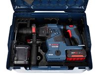 Młotowiertarka GBH 18V-28 CF jest równie wydajna jak typowa młotowiertarka sieciowa, a przy tym bardziej poręczna, lekka i niezależna ponieważ nie posiada przewodu zasilającego. W wyposażeniu seryjnym znajduje się najnowszej generacji ładowarka sieciowa – model GAL 1880 CV PROFESSIONAL.
