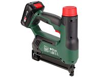 Zszywacz elektryczny do szybkiego mocowania materiałów izolacyjnych, folii, tkanin, tapet, listew, itp. na powierzchniach drewnianych lub wykonanych z materiałów drewnopodobnych.
