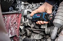 Akumulatorowy kątowy klucz grzechotkowy GRC 12V-60 SN jest równie wydajna jak typowe klucze sieciowe, a przy tym bardziej poręczny, lekki i niezależny ponieważ nie posiada przewodu zasilającego. W wyposażeniu seryjnym znajduje się najnowszej generacji ładowarka sieciowa – model GAL 12V-40 PROFESSIONAL