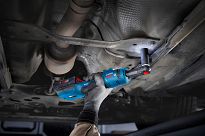 Akumulatorowy kątowy klucz grzechotkowy GRC 18V-60 jest równie wydajny jak typowe klucze pneumatyczne, a przy tym bardziej poręczny, lekki i niezależny ponieważ nie posiada przewodu ciśnieniowego.