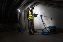 Lampa oferuje moc światła do 5000 lumenów, zapewniając bardzo intensywne i równomierne oświetlenie przestrzeni roboczej. Model posiada 3 poziomy jasności, co pozwala dopasować natężenie światła do warunków pracy i zoptymalizować zużycie energii.