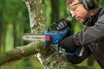 Firma BOSCH opracowała nową ofertę akumulatorowych pił łańcuchowych i wyposażyła je w wiele przydatnych funkcji. Wszystkie modele charakteryzują się niewielkim ciężarem i posiadają sprawdzony, bez narzędziowy system napinania łańcucha BOSCH SDS, ułatwiający i skracający czas wymiany łańcucha.