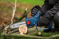 Firma BOSCH opracowała nową ofertę akumulatorowych pił łańcuchowych i wyposażyła je w wiele przydatnych funkcji. Wszystkie modele charakteryzują się niewielkim ciężarem i posiadają sprawdzony, bez narzędziowy system napinania łańcucha BOSCH SDS, ułatwiający i skracający czas wymiany łańcucha.