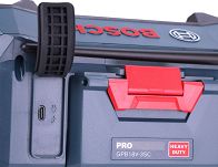Wbudowane gniazdo do zasilania akumulatorowego pozwala na korzystanie z radia bez konieczności podłączania do zasilania sieciowego 220V/230V – radio może być zasilane tylko i wyłącznie akumulatorami litowo-jonowych 18V firmy BOSCH z linii Professional.