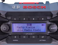 Wysokiej jakości radio stereofoniczne FM oraz DAB+ z 8 miejscami pamięci stacji radiowych (4 dla FM oraz 4 dla DAB+), radio może być zasilane napięciem sieciowym 230V (poprzez port USB-C), bądź akumulatorem litowo-jonowym firmy BOSCH o napięciu 18V.