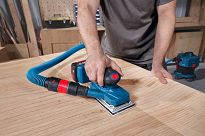 Wbudowany system odsysania pyłu oraz worek tekstylny na pył firmy BOSCH gwarantuje wysoką wydajność odsysania pyłu powstającego podczas szlifowania wszelkich materiałów. Wbudowany moduł odsysający z dużą szybkością transportuje pył szlifierski poprzez talerz szlifierski i papier ścierny bezpośrednio do podłączonego worka na pył.