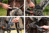 Szczotka do czyszczenia łańcuchów rowerowych dzięki swojej konstrukcji idealnie nadaje się do usuwania uporczywych zabrudzeń z łańcuchów i przestrzeni między zębatkami.