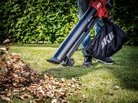 Odkurzacz ogrodowy został wyposażony w funkcję nadmuchu (wymiatania) oraz funkcję zasysania z rozdrabnianiem odpadów w stosunku 12:1.