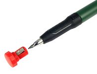Zintegrowana temperówka dzięki której ołówek jest zawsze naostrzony i gotowy do użycia.