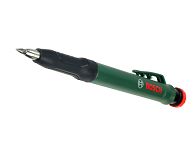 Ołówek, znacznik do głębokich otworów firmy BOSCH posiada zdejmowaną skuwkę, tak więc oprócz znakowania powierzchni płaskich, po zdjęciu skuwki może służyć do łatwego znakowania miejsc w głębokich otworach, co zwiększa elastyczność pracy.