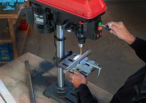 Regulacja kąta stołu roboczego w zakresie -45° do 45° umożliwia bardzo łatwą regulację kąta wiercenia.