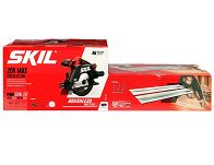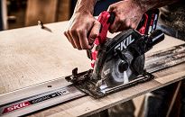 2 aluminiowe szyny SKIL o łącznej długości 140cm w wyposażeniu pilarki są doskonałe do przycinania krótkich i długich elementów (np. płyta meblowa, blaty). Szyny zapewniają bardzo precyzyjne prowadzenie pilarki, także w przypadku łączenia za pomocą samocentrującego elementu łączącego. Dzięki zastosowaniu szyny użytkownik ma możliwość cięcia wzdłuż linii prostej bez konieczności wytyczania jej na materiale. Spód szyny został pokryty specjalnym antypoślizgowym materiałem gumowym, dzięki któremu szyna nie przesuwa się po materiale, a co za tym idzie nie jest wymagany dodatkowy montaż.