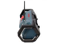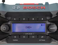 Wysokiej jakości radio stereofoniczne FM oraz DAB+ z 8 miejscami pamięci stacji radiowych (4 dla FM oraz 4 dla DAB+), radio może być zasilane napięciem sieciowym 230V (poprzez port USB-C), bądź akumulatorem litowo-jonowym firmy BOSCH o napięciu 18V.