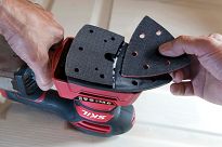Swoją wszechstronność zawdzięcza rozwiązaniu z trzema wymiennymi płytami szlifierskim: kwadratową, prostokątną i trójkątną. Użytkownicy mogą teraz w szybki i łatwy sposób przystosować narzędzia do wykonywanej pracy.
