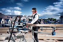 Wysuwane podpórki z lewej i z prawej strony ukośnicy ułatwiają cięcie długich elementów, dodatkowo zostały wyposażone w zintegrowany ogranicznik długości.