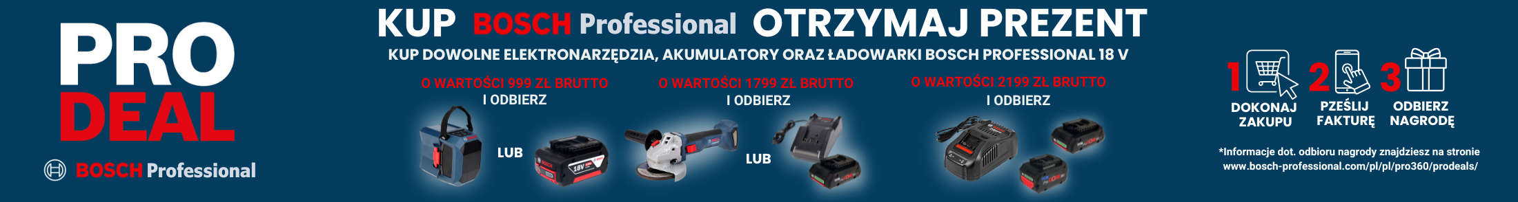 2. Zarejestruj swój produkt Bosch Professional i dodaj dowód zakupu pod linkiem https://pro360.bosch-professional.com/deals