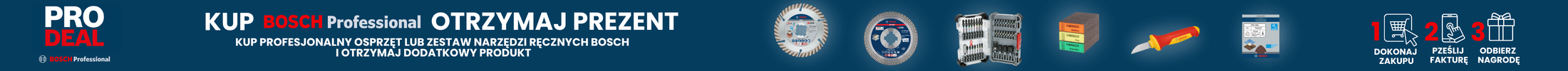Kup zestaw osprzętu Bosch Professional lub narzędzie ręczne i otrzymaj dodatkowy produkt zaprojektowany jako uzupełnienie Twojego zakupu. Dokładne informacje odnośnie nagrody do danego zestawu osprzętu lub narzędzia ręcznego podane są w tabeli znajdującej się w linku poniżej