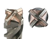 Ostrza mają duży kąt wierzchołkowy i dlatego ich krawędzie pracują na całej swojej długości - dzięki takiemu rozwiązaniu uzyskano łatwiejsze zagłębienie się wiertła w obrabiany element i kruszeniu większej ilosci materiału podczas każdego udaru co przełożyło się na uzyskanie bardzo dużej wydajności wiercenia.