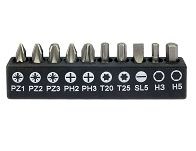 Komplet 10 najbardziej popularnych końcówek wkrętarskich w wyposażeniu wkrętarki.