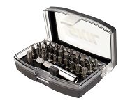 Zestaw 32 różnych akcesoriów w trwałej i bardzo poręcznej kasecie z tworzywa sztucznego składa się z: