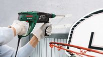 Dzięki wiertłom SDS-Plus firmy BOSCH posiadającym podwójną spiralę została zwiększona prędkość odprowadzania urobku, a co za tym idzie osiągnięto większa prędkość wiercenia.